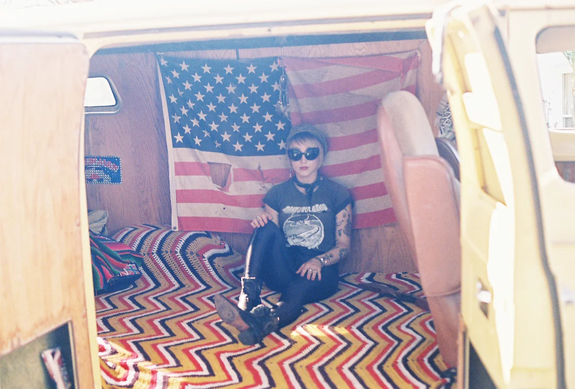 On the weekends, Margeaux Sells vintage clothes at the swap meet. She used to live in her van but now she rents a room in a house. Once a month she visits a Shaman who puts rocks on her back and chest; she says it is rejuvenating. She rides a motorcycle, but is thinking of selling it. She loves living in California, but is planning a trip to France. She has a tattoo of a heart just below her throat. Her record collection is big and she has lots of trinkets she's collected over the years. She also thinks one of the best questions you could ask someone is what happens when you die. Some days she believes in reincarnation, other days nothing at all. She likes to play her Ukulele and also enjoys dressing up, which can sometimes be a problem when the weather is too hot.